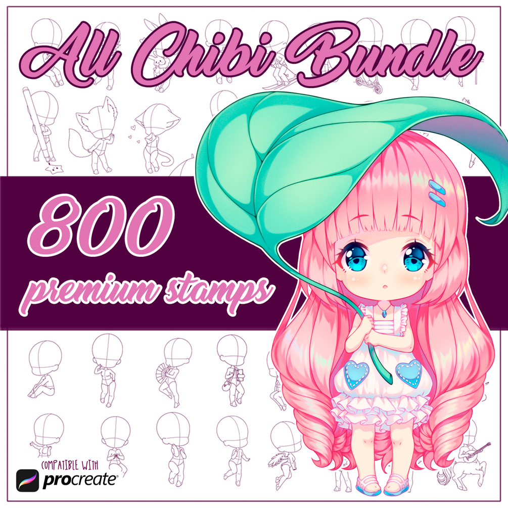 800 Procreate Stamps - Complete Collection of Chibi Bases [+PNG]
