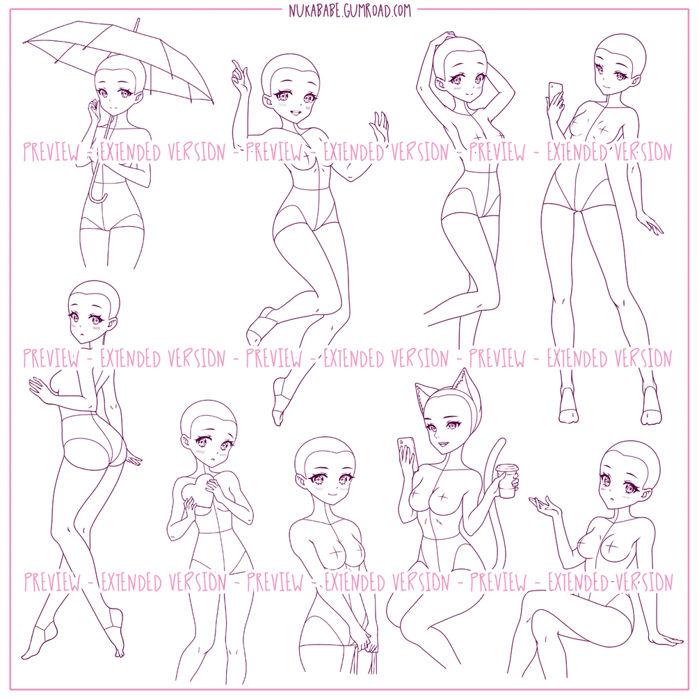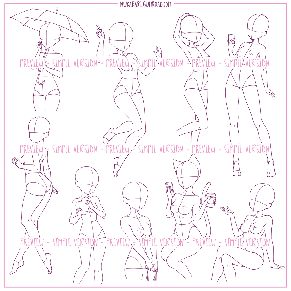 Each figure has special guiding lines on it to help you with placing facial features, clothing, and other design elements. Crisp, professionally done outlines of these realistic poses make it possible to use them not only for anatomy study and practice purposes, but also for professional art gigs, including game illustration, fashion design, drawing commissions, and adoptable making. Commercial license comes with the purchase (please see the terms below)!