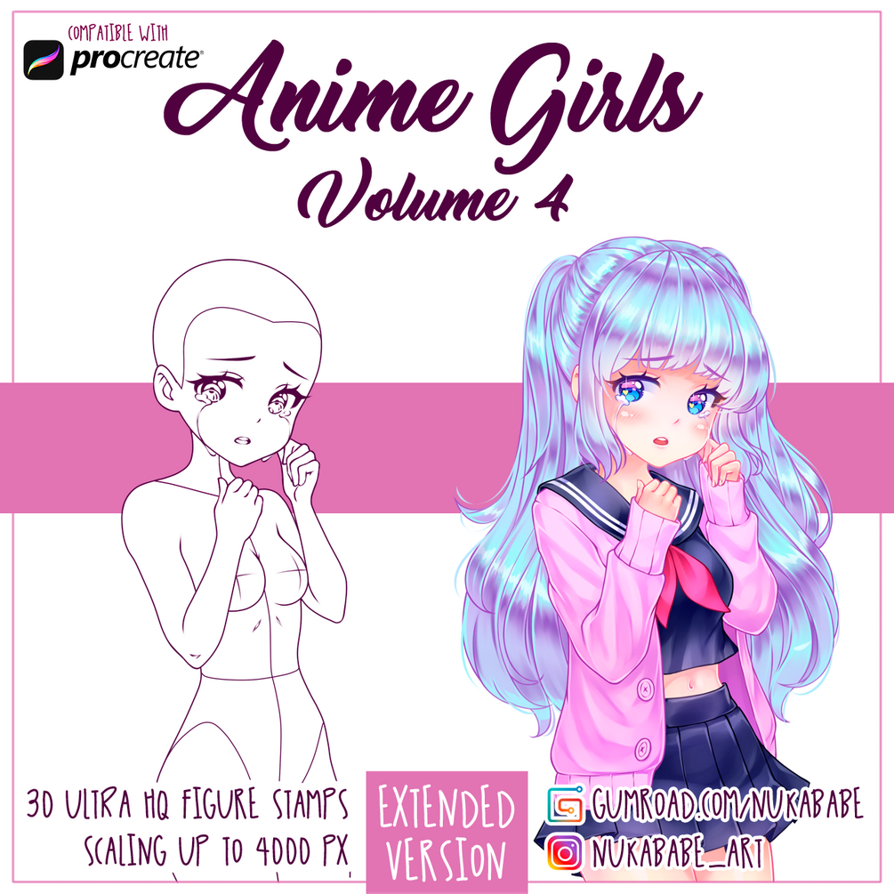 30 Procreate Stamps - Female Anime Poses Vol. 4 [+Transparent PNG}
