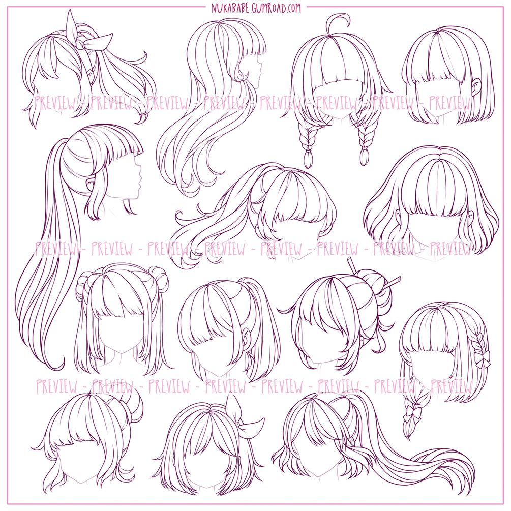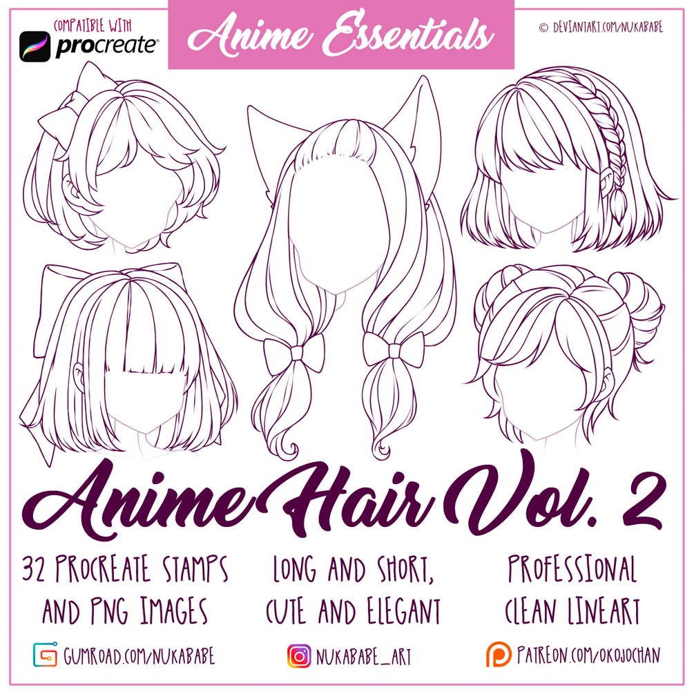 Procreate Hair Stamps | Anime Female Hairstyles | Manga Hair Brushes