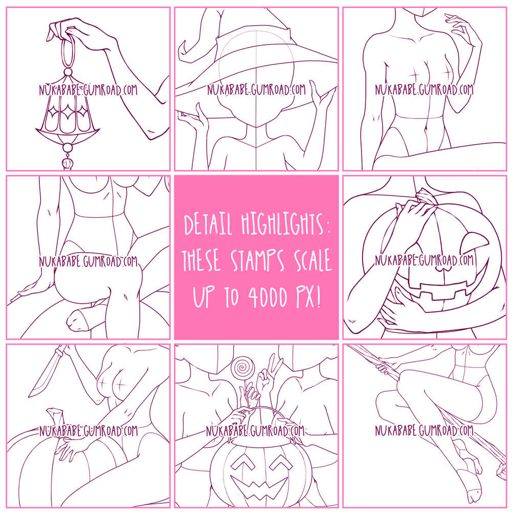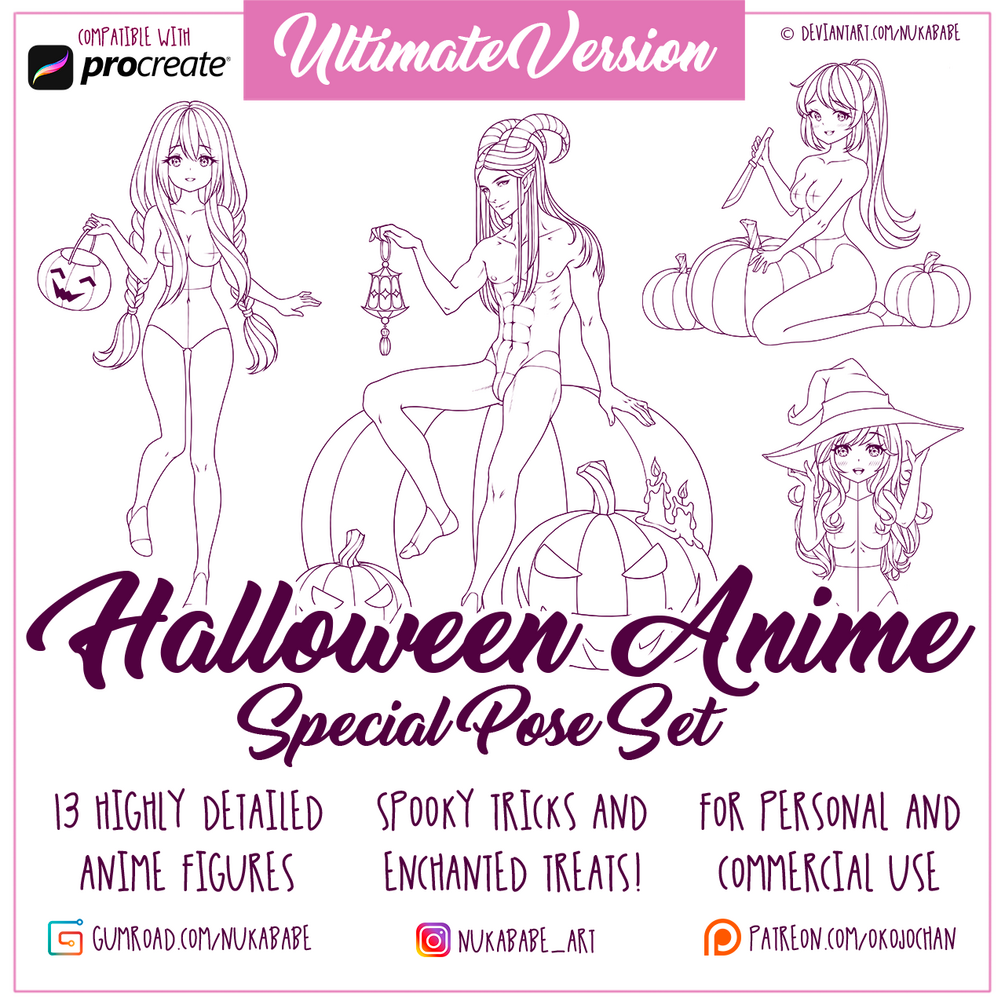 13 Procreate Stamps - Anime Halloween Poses [+PNG]