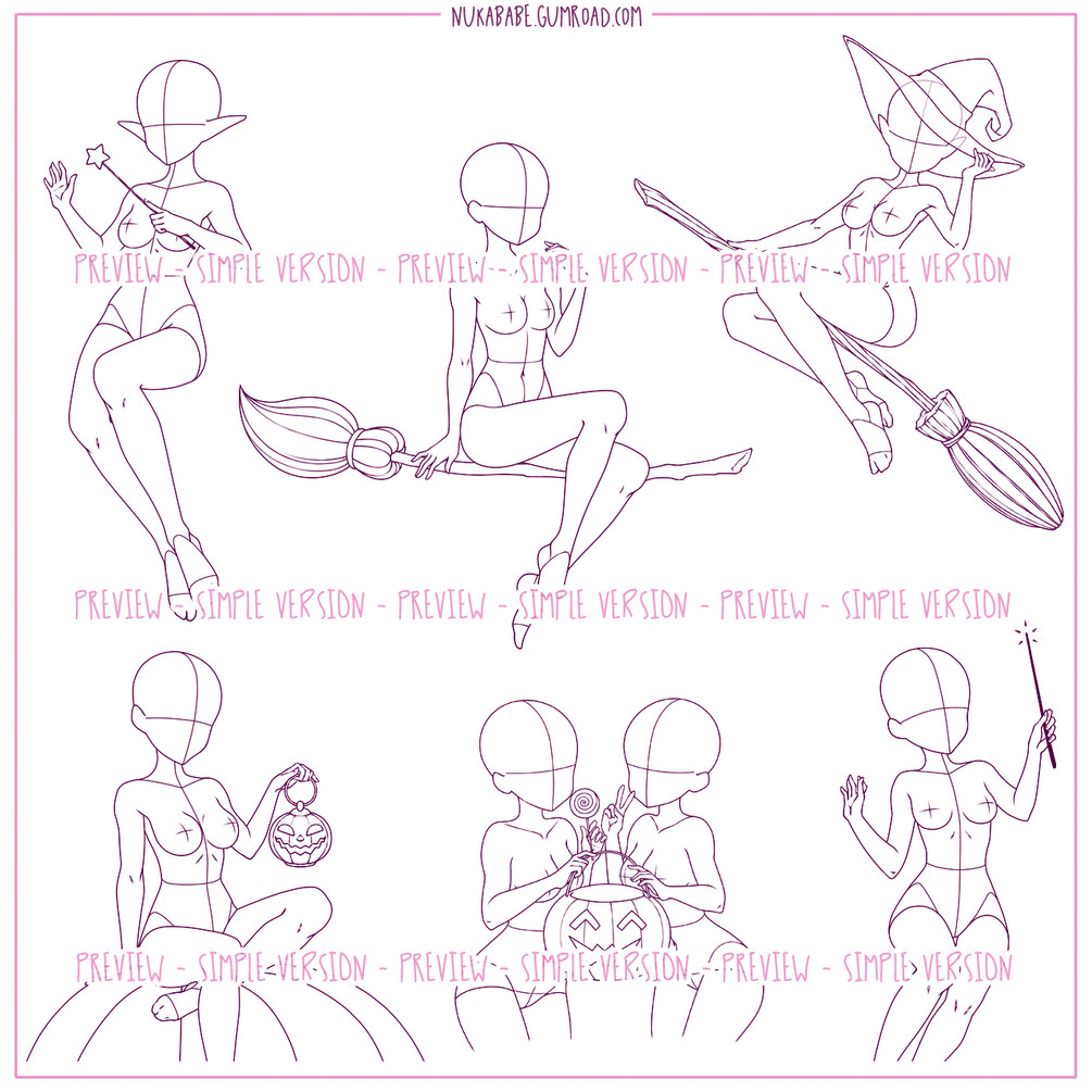 If you are obsessed with Halloween theme as much as I am, you might love the treats I brought to you in this anime base set! Witches, trick-or-treaters, a couple of brooms and a bunch of pumpkins are the main ingredients of this very special pose collection. It mainly includes girl bases, but there is also a super cute girl+girl couple base and an epic male demon base in it - check out the previews above!
