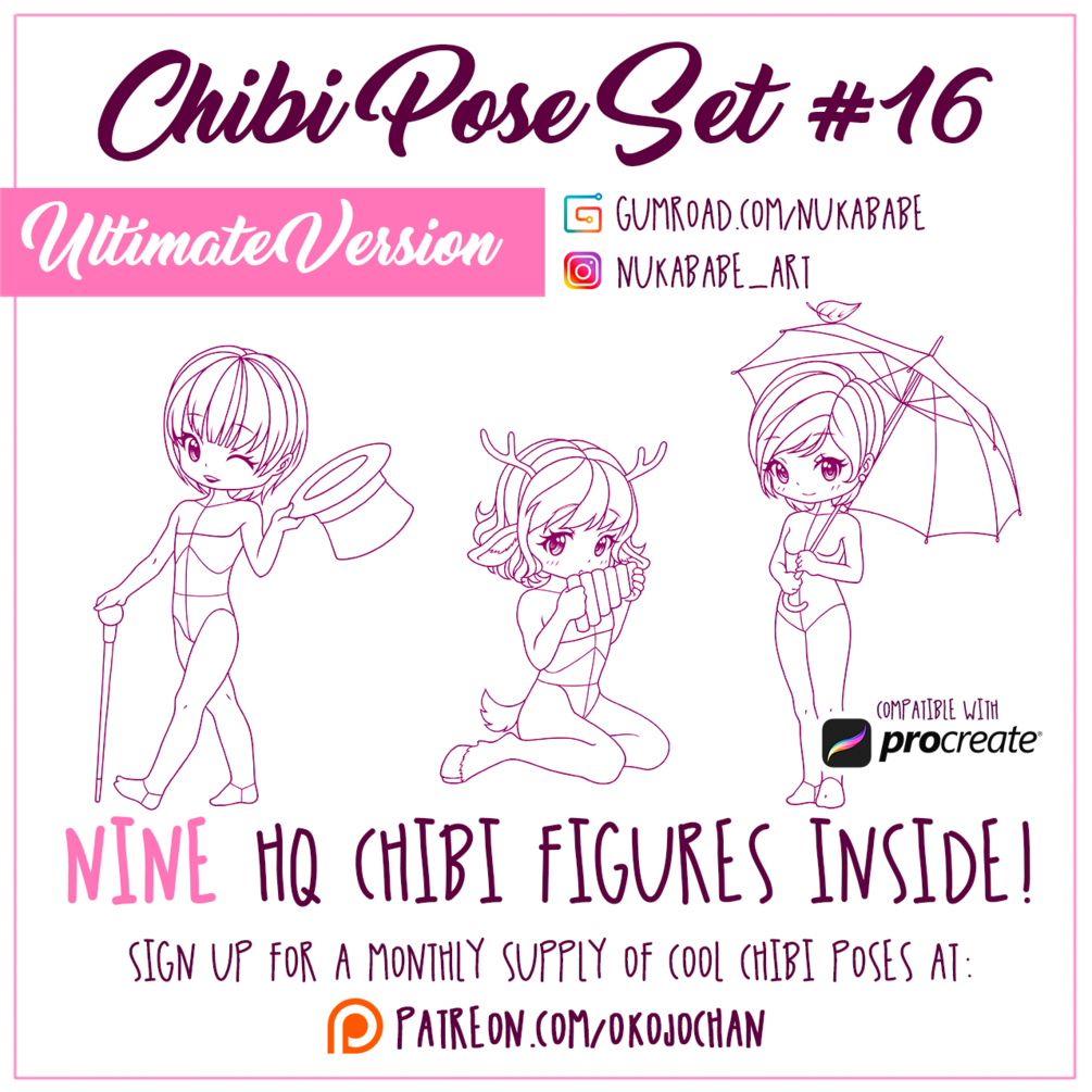 Procreate Chibi Base Set #16 - Procreate Stamps - PNG Poses