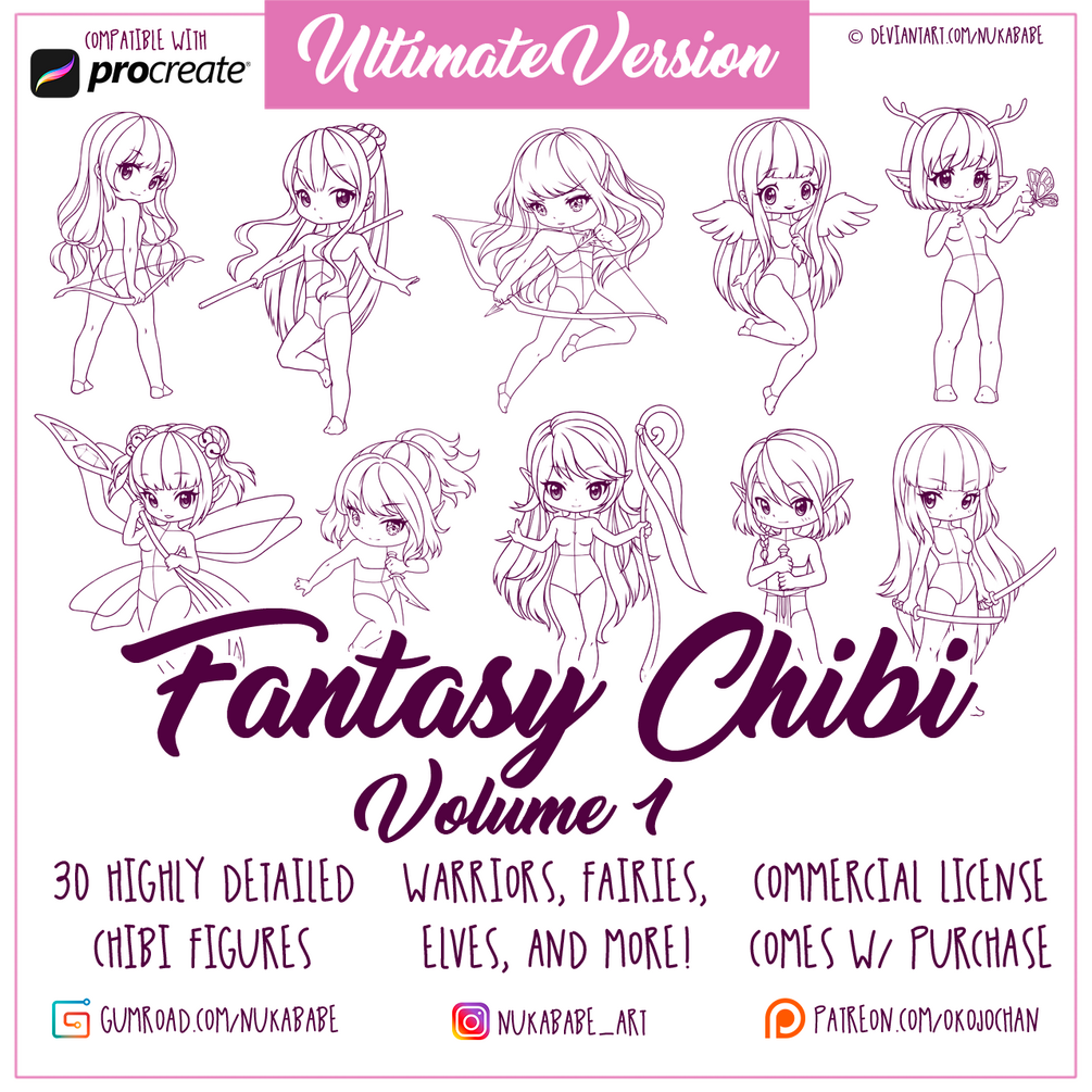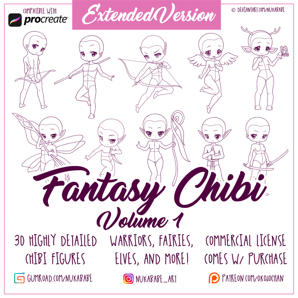 30 Procreate Stamps - Fantasy Chibi Poses Vol. 1 [+PNG]