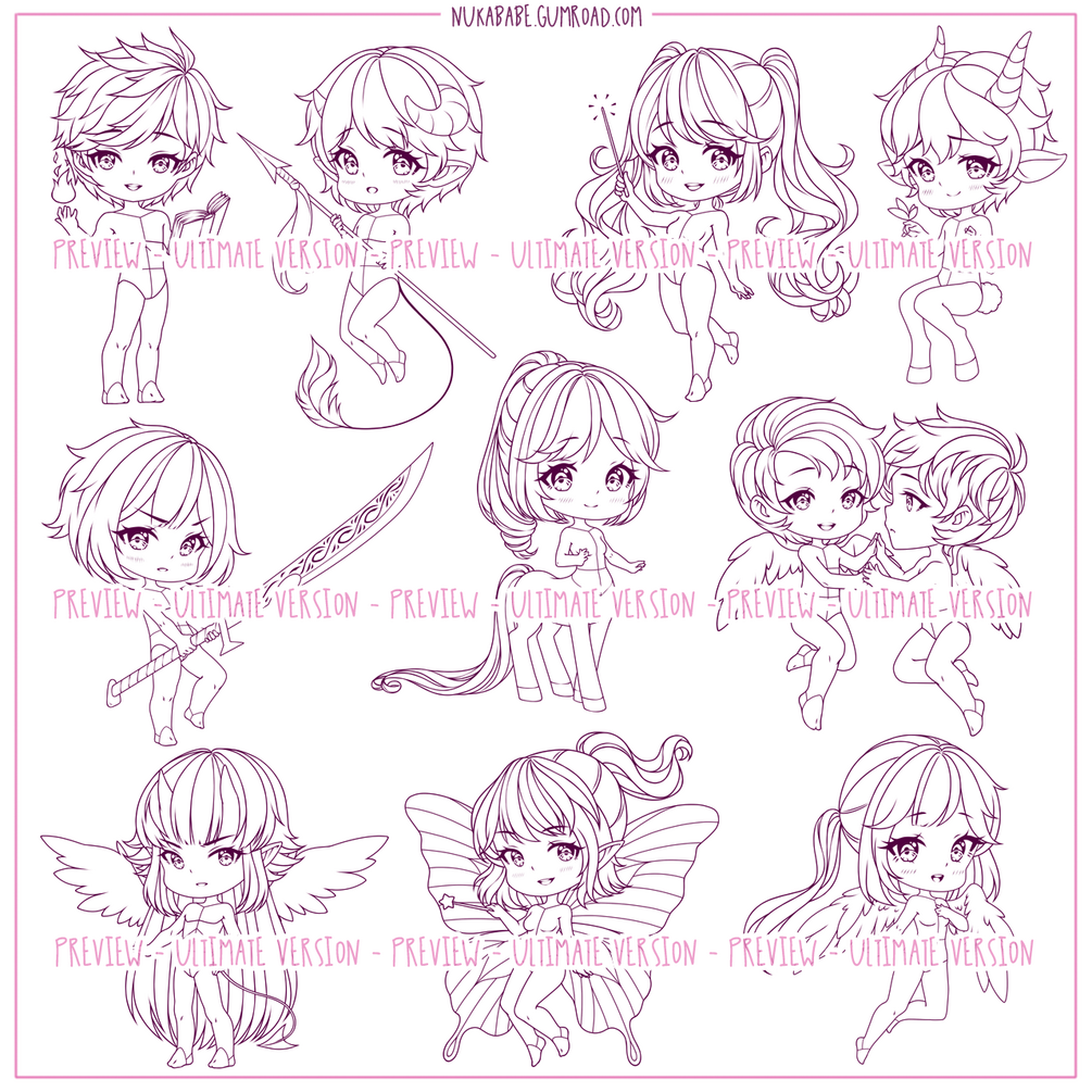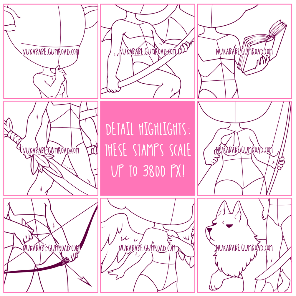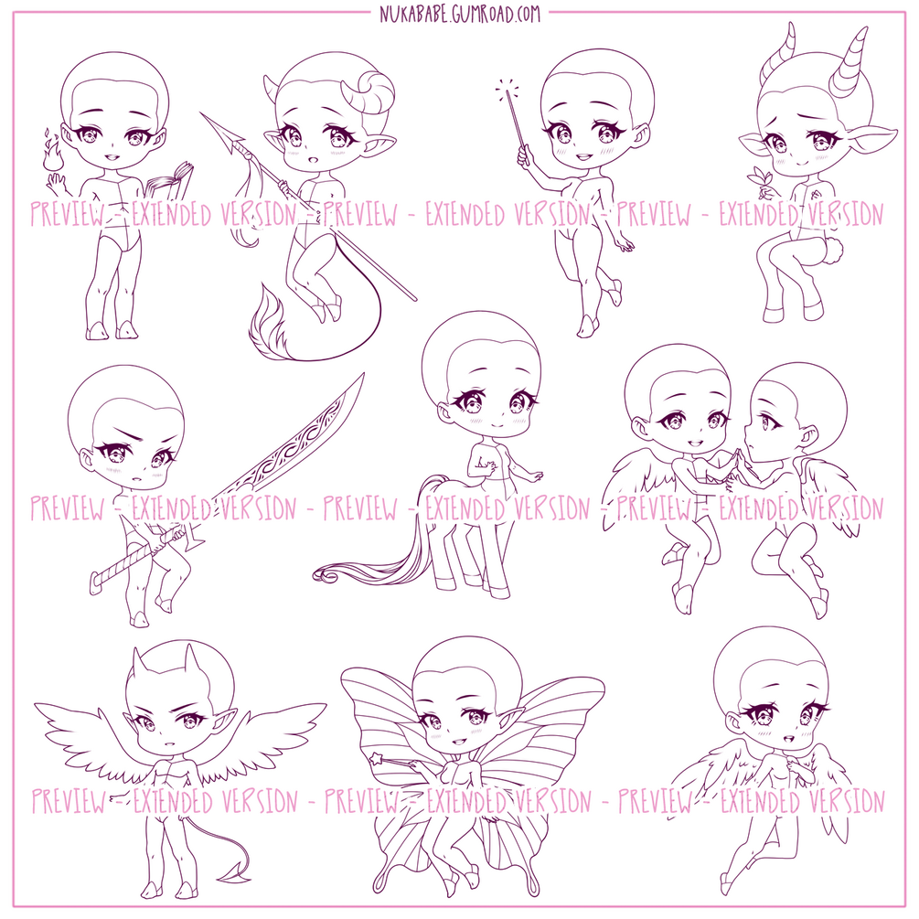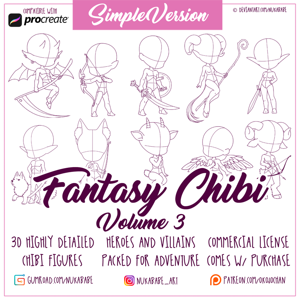 If you are into sweet chibi angels and cute chibi demons, I highly recommend taking a look at this pose set for Procreate! :D While this 30-pose stamp set is a bit more inclined to the demons and angels theme than my other fantasy packs, it also offers a bunch of other fantasy character templates, including elves, warriors, and hooved cuties. With insanely precise linework and high resolution, these poses are not only reliable figure references, but also great time savers for commercial work!