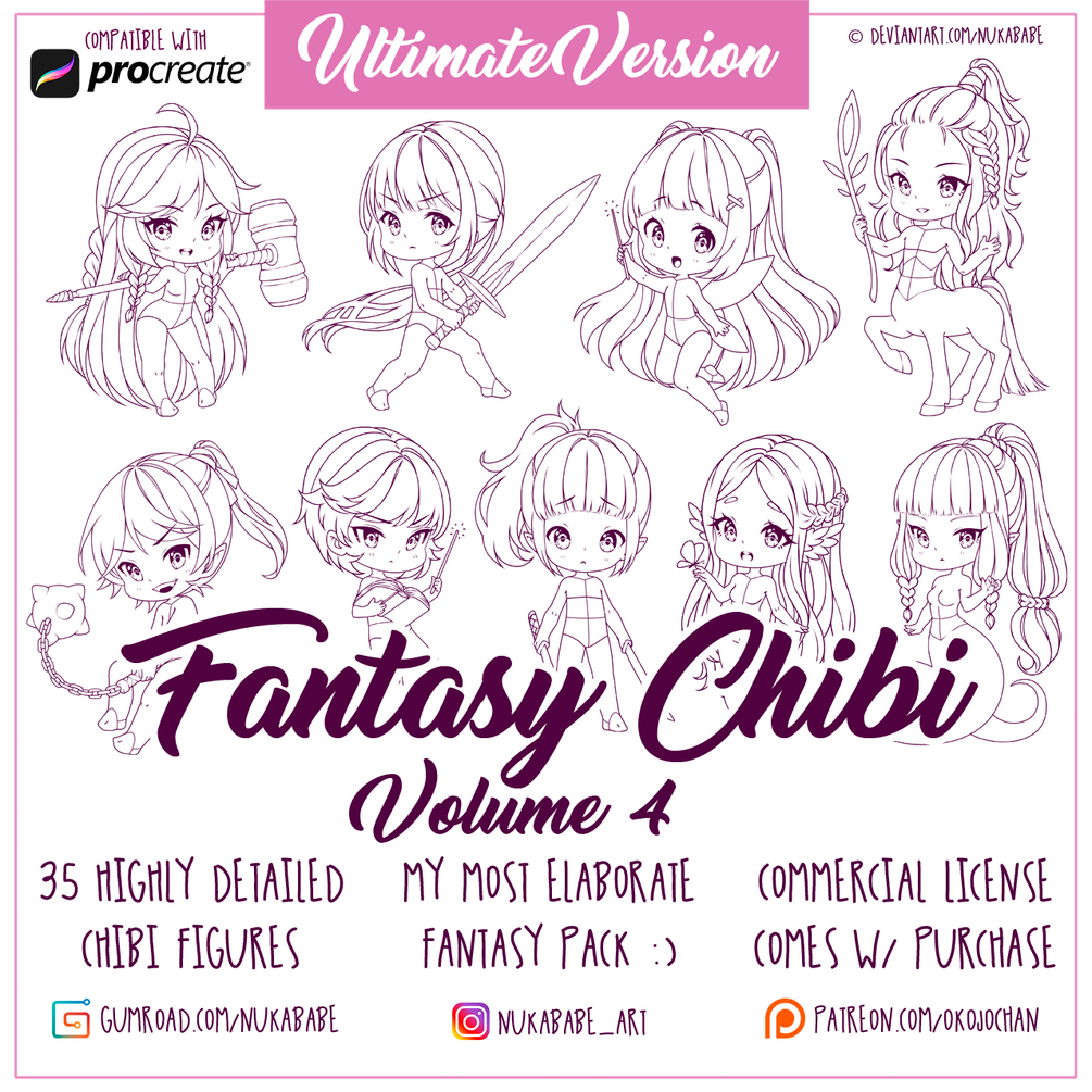 Check out my other fantasy inspired packs of premium chibi bases: