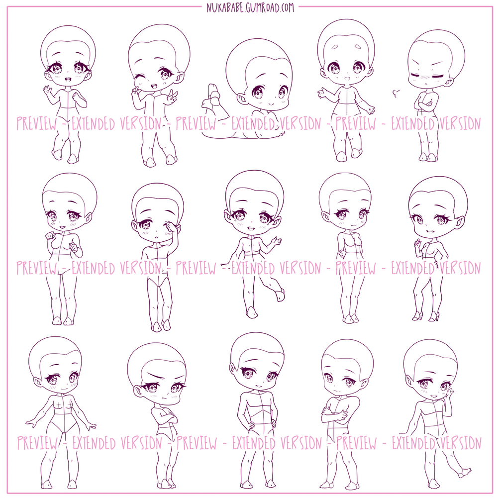 By the way, I also have an Anime Beginner Base Pack in my store! And if you are looking for other simple chibi poses, check out these packs: