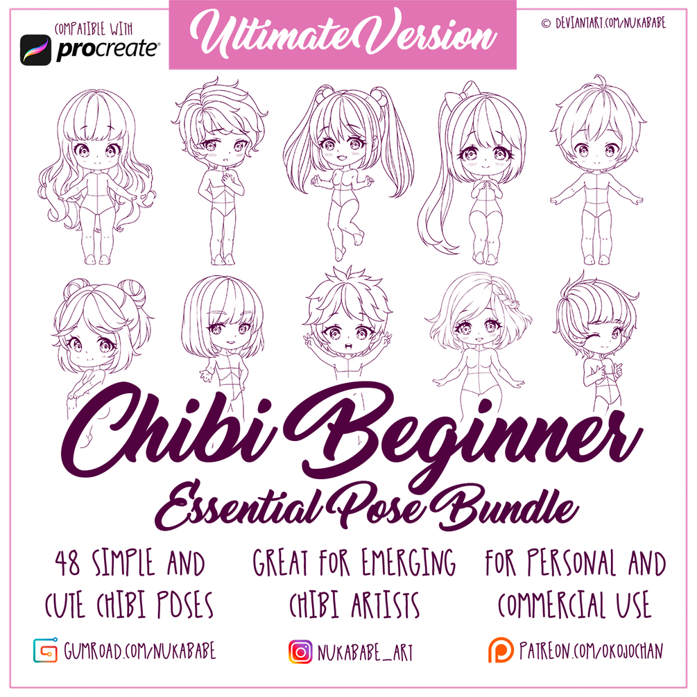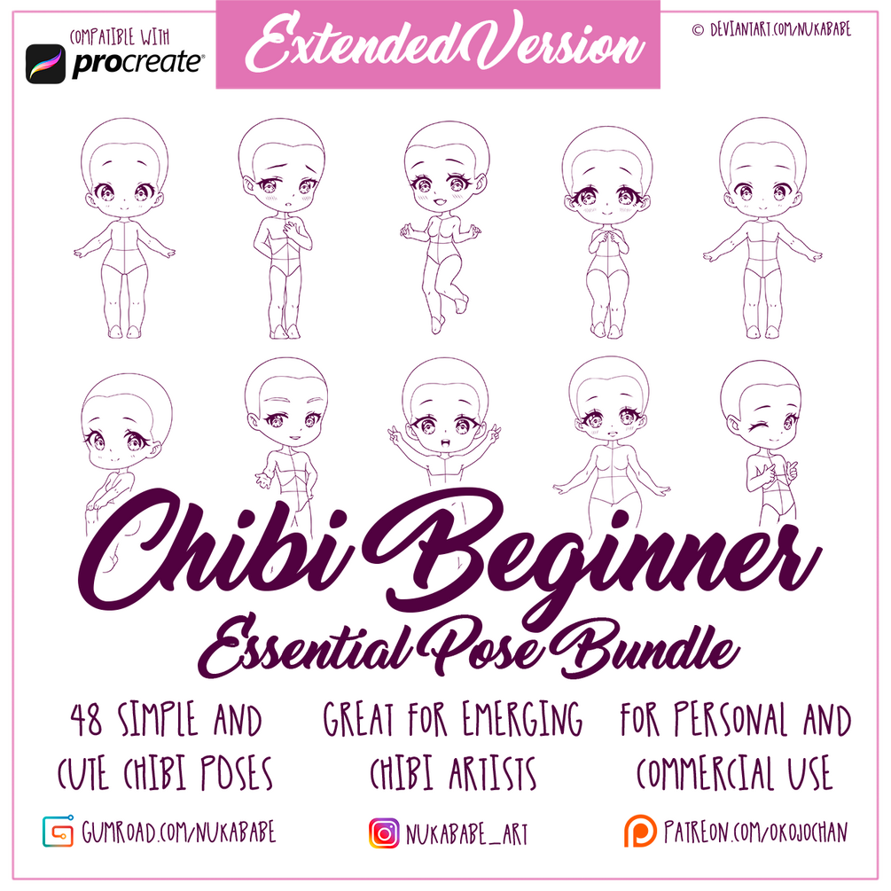 48 Procreate Chibi Stamps - Chibi Poses for Beginners [+PNG]