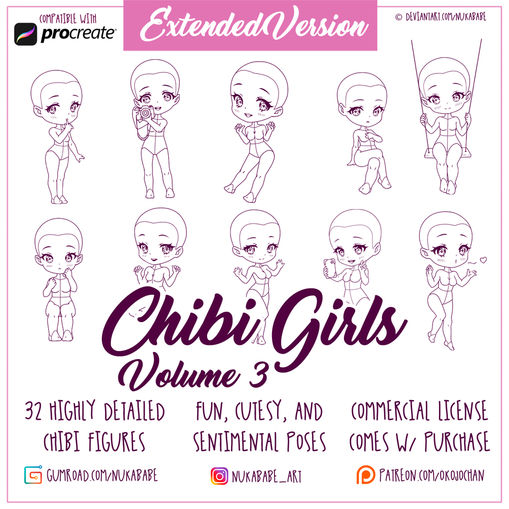 32 Procreate Stamps - Chibi Girls Poses Vol. 3 [+PNG]