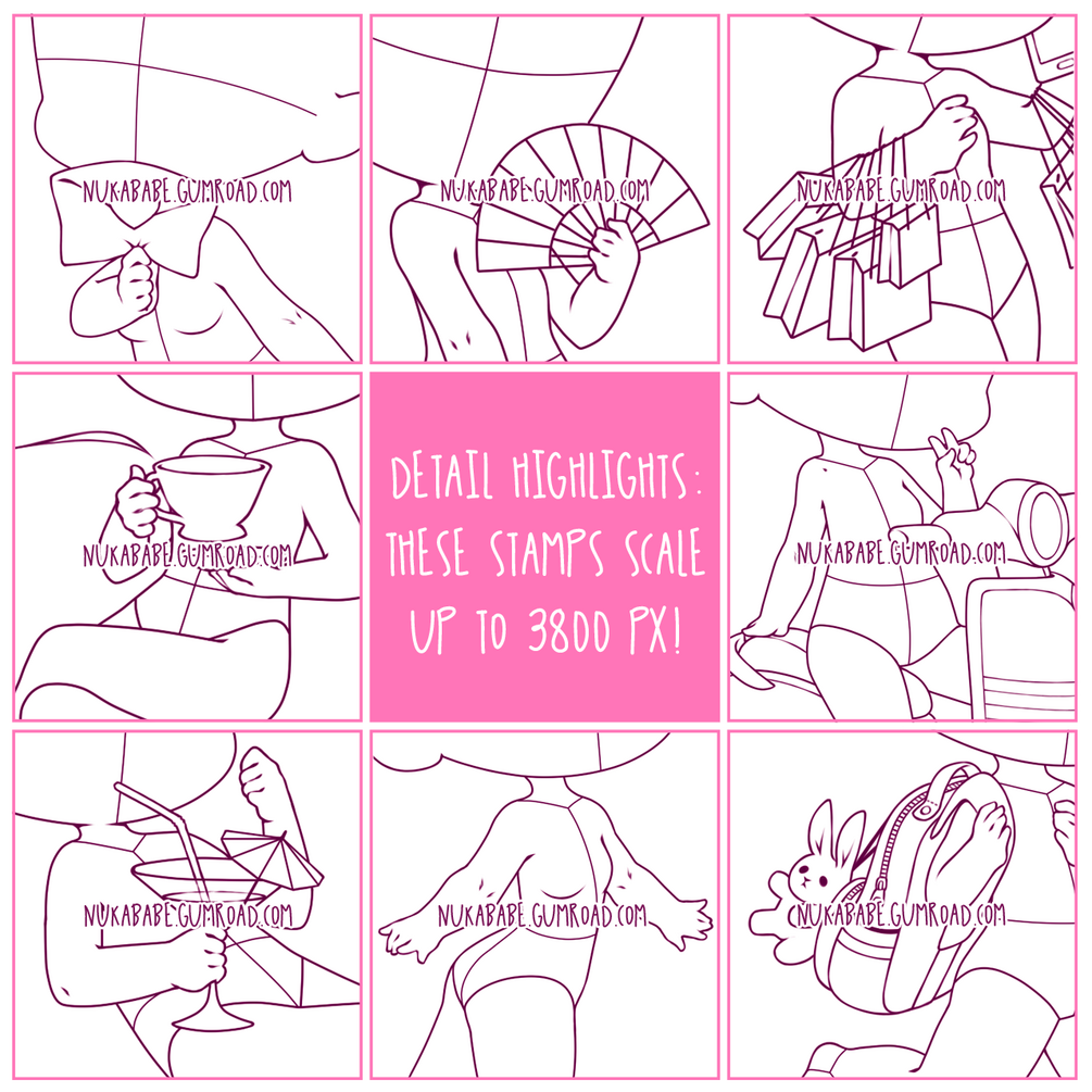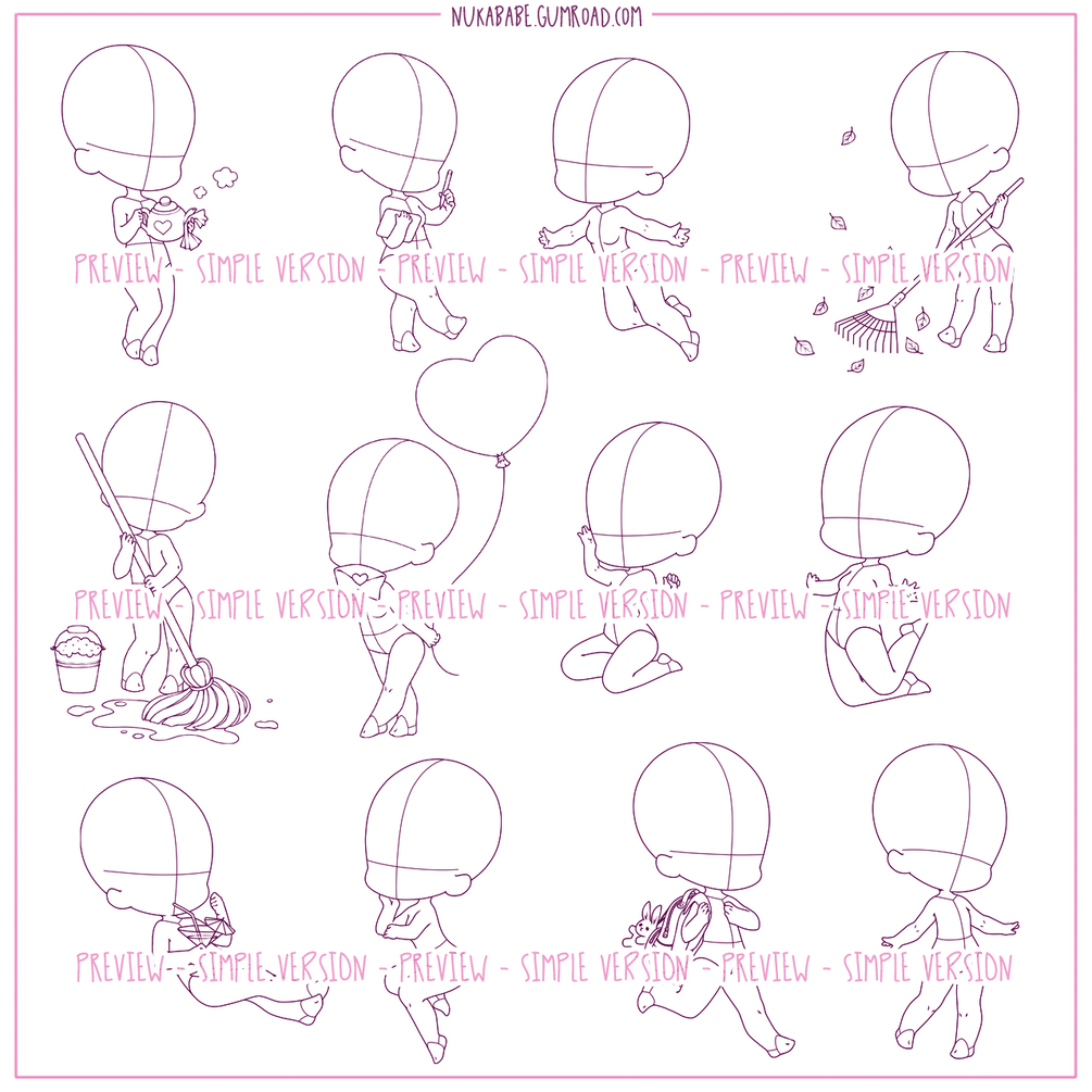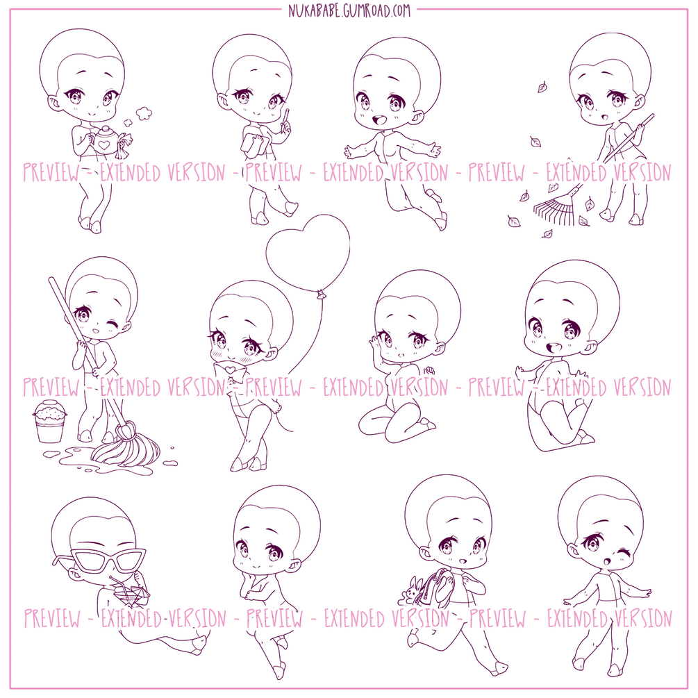 Procreate stamps included in this chibi base set go together with high resolution PNG images that can be imported in every drawing software supporting PNG files, including Photoshop, PaintTool SAI, and Clip Studio Paint.