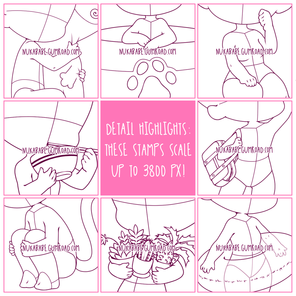 Due to the digital nature of this product, I cannot accept refunds or returns. But if you experience any sort of problem with unpacking, installing, or using the files from this stamp set, feel free to message me or send me an email at sales@nukababe.com - I am always glad to help with my resources! Happy drawing!