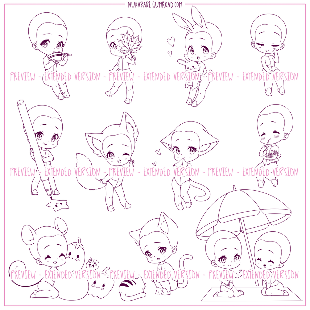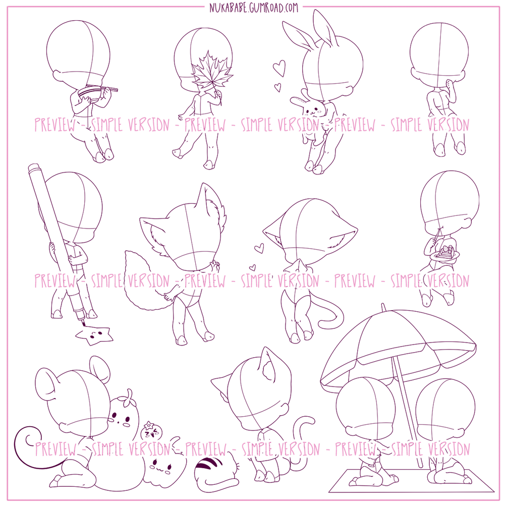 The chibi bases from this pack represent nothing but distilled cuteness in its loveliest form! :D Microsized chibi, sleepy cuties, and adorable munchers are just a few examples of character base types included in this pose set. Thanks to clean, professionally developed lines and great scaling properties (up to 3800 px height in Procreate), these bases can be helpful in a variety of art settings, from learning and practice to commercial illustration projects.