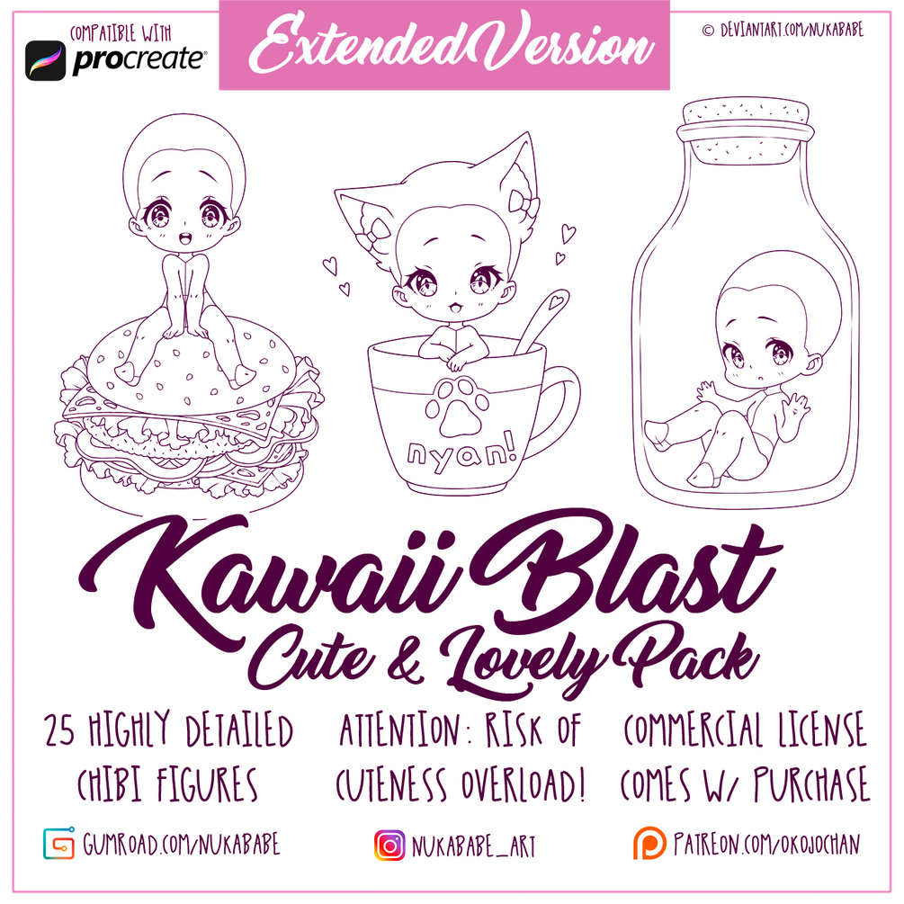 If you are interested in cute, kawaii, and sentimental illustration, take a look at my other cutesy-oriented chibi base packs: