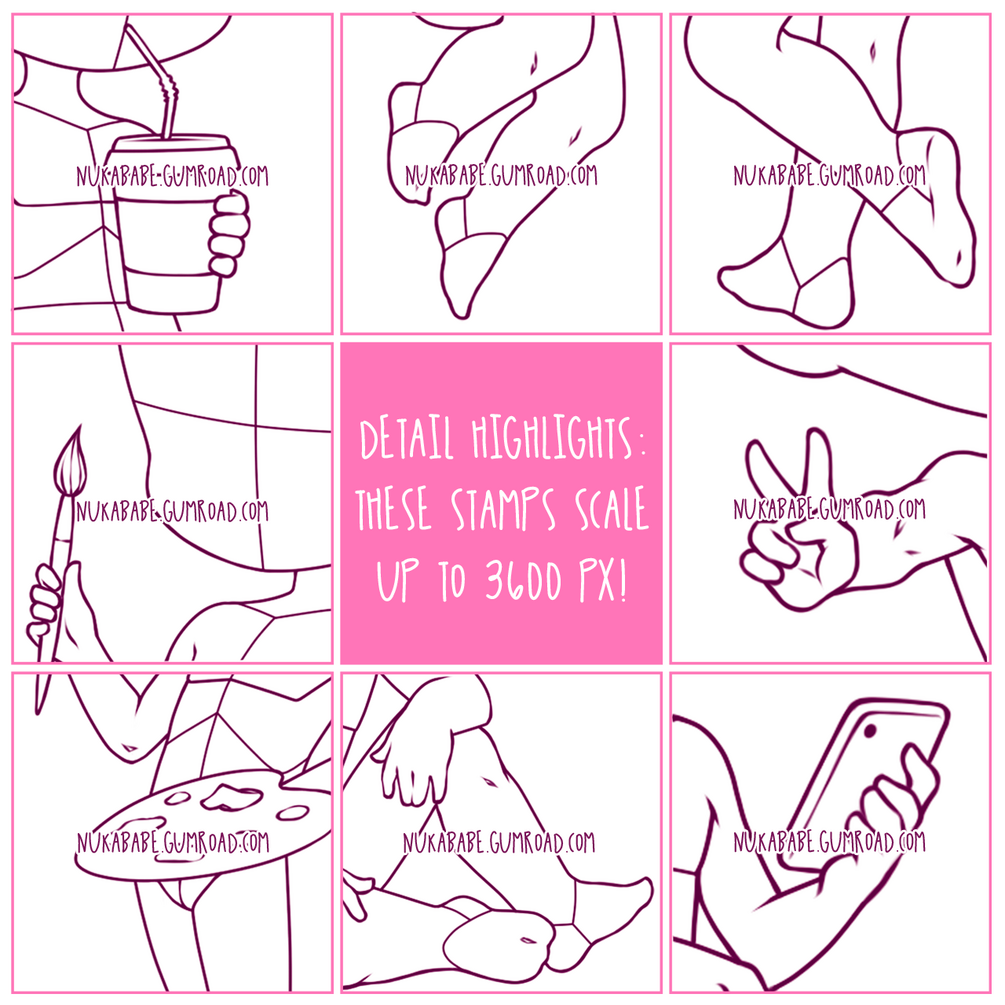 Due to the digital nature of this product, I cannot give or accept refunds or returns. But if you experience any sort of problem with unpacking, installing, or using the files from this stamp set, feel free to message me or send me an email at sales@nukababe.com - I am always glad to help with my resources! Happy drawing!