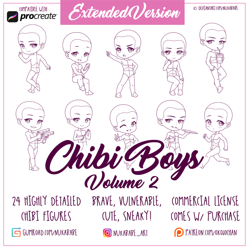 24 Procreate Stamps - Male Chibi Poses Vol. 2 [+PNG]