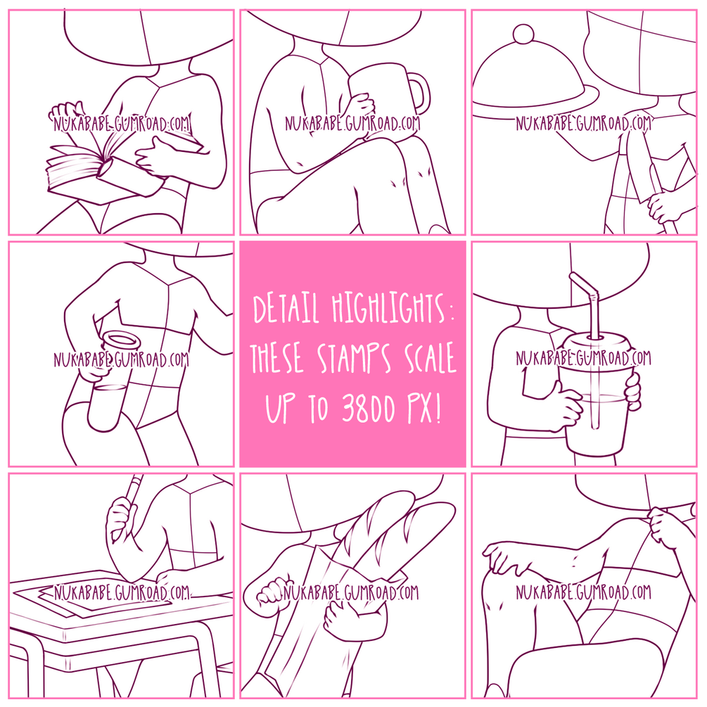 Due to the digital nature of this product, I cannot give or accept refunds or returns. But if you experience any sort of problem with unpacking, installing, or using the files from this stamp set, feel free to message me or send me an email at sales@nukababe.com - I am always glad to help with my resources! Happy drawing!